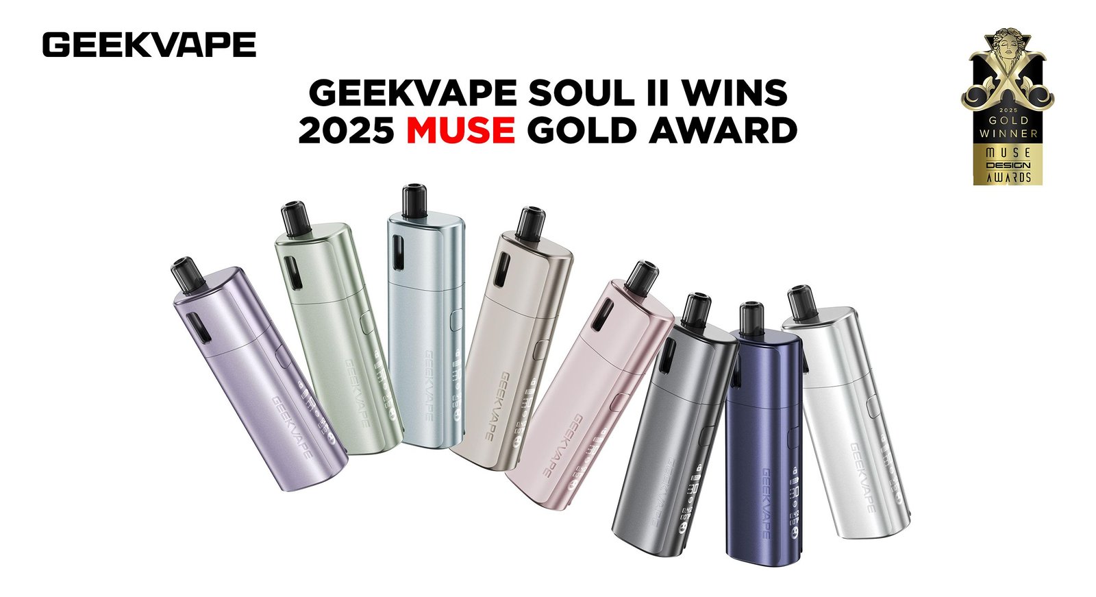 Geekvape a le plaisir d’annoncer que son tout dernier produit, le SOUL II, a remporté le prestigieux prix MUSE Design Gold Award 2025, l’une des distinctions les plus influentes dans le secteur créatif à l’échelle mondiale. Souvent comparés aux « Oscars du design », les MUSE Awards récompensent l’excellence en matière de design et d’innovation. Cette réussite témoigne de la forte présence de la marque Geekvape et de sa quête constante de l’excellence.